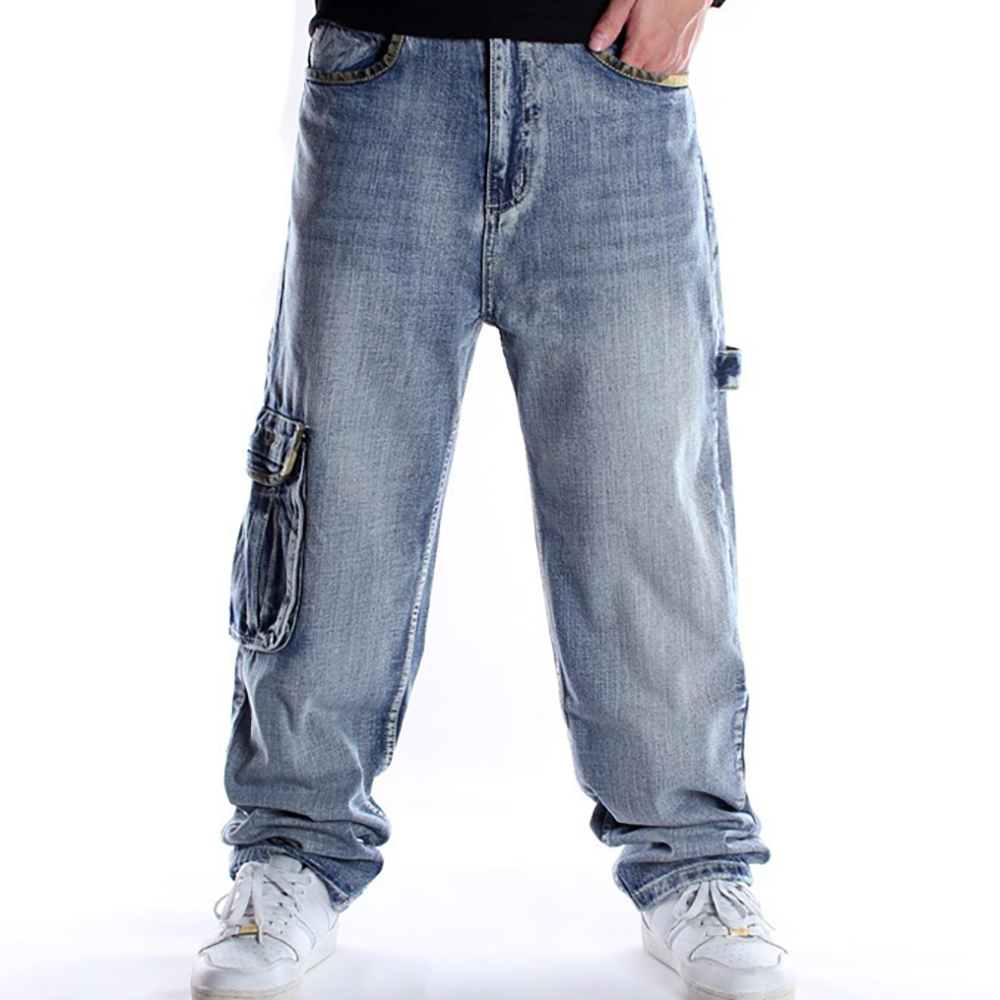 Fashion HipHop Baggy Men’s Jeans Loose Big Pocket Boys Skateboard Rap Punk Denim Pants