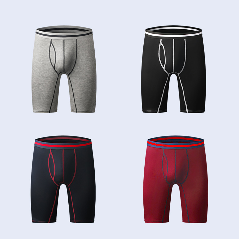 Pack of 4 Men’s Anti-chafing Long Underwear Male Underpants Cotton Comfortable Soft Man Breathable Striped Boxer Shorts